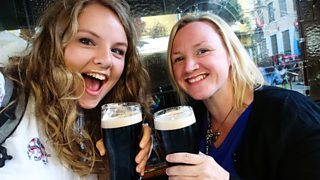 Rosie enjoys a pint of Dublin's famous export with a group of the city's deaf residents.