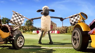 Shaun tries to ensure that Bitzer won’t be defeated in the box cart Grand Prix again.