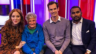 Amol Rajan and Angela Scanlon are joined on the sofa by Sir Andy Murray.