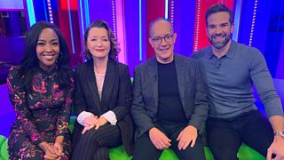 Matt Baker and Angellica Bell are joined by Michael Ball, Alfie Boe and Glenda Jackson.