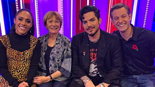 Matt Baker and Alex Scott are joined by Queen Adam Lambert and Dame Joan Bakewell.