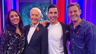 Matt Baker and Angellica Bell are joined by Peter Crouch, Chris Evans and Ore Oduba.