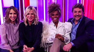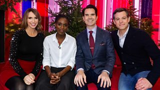 Guests include comedian Jimmy Carr and actor Sharon Duncan-Brewster.