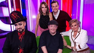 Boy George and Johnny Vegas join Matt Baker and Alex Jones on the One Show sofa.
