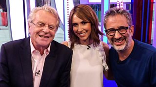 Alex Jones and Jerry Springer are joined on the sofa by David Baddiel.