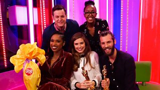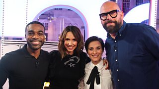 Alex Jones and Matt Baker are joined by Lady Wilnelia Forsyth and Catherine Tate.