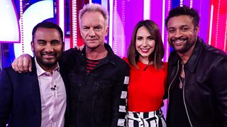 Alex Jones and Amol Rajan are joined on the sofa by Sting and Shaggy.