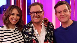 Alan Carr joins Matt Baker and Alex Jones on the sofa.