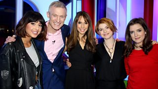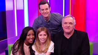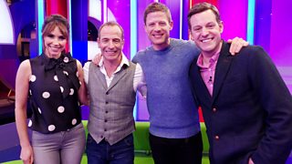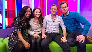 Matt Baker and Angellica Bell are joined by Greg Davies and Stacey Dooley.