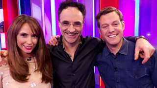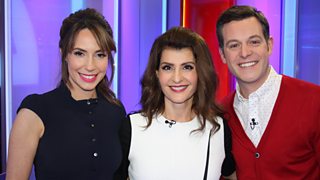 Omid Djalili guest presents with Alex Jones, and Giles Coren joins them on the green sofa.
