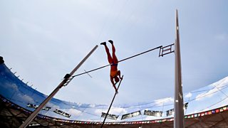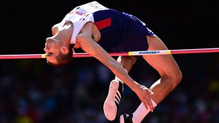 London 2012 bronze medallist Robbie Grabarz is in action in high jump qualifying.