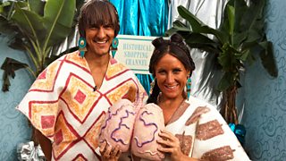 The Ug and Ugio families go head to head on Stone Age Family Fortunes.