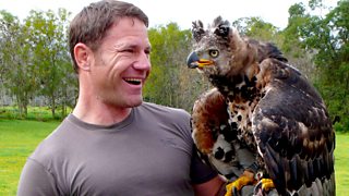 Steve Backshall is charmed by the snake-stomping secretary bird.