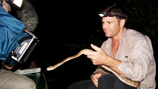 Steve searches the jungle for a lethal predator who eats his victims head first.