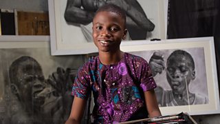 A 13-year-old Nigerian hyperrealism artist stages his first exhibition in his hometown.