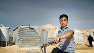 Sixteen-year-old Syrian Ahmed gives a guided tour of his home, a refugee camp in Jordan.