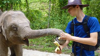 Natasha and her brother Joe rescue a mother elephant and her baby in Thailand.