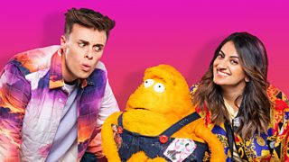 Joe Tasker, Harpz Kaur and Stanley celebrate the 100th edition of Saturday Mash-Up.