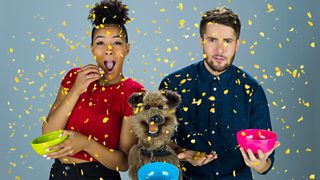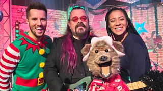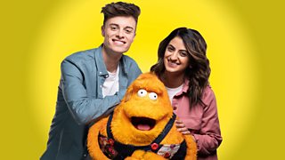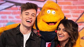 Joe, Harpz and Stanley welcome CBBC’s Rhys Stephenson and Radio 1’s Katie Thistleton.