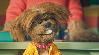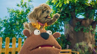 When Biscuit gets peas stuck in her fur, Dodge mishears and thinks she has fleas.