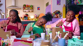 The Kwapongs craft cardboard games consoles, and Tilly Lockey draws a mermaid!