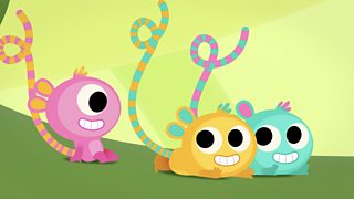 The Game Catchers learn to play beanbag toss with aliens that like to monkey around.