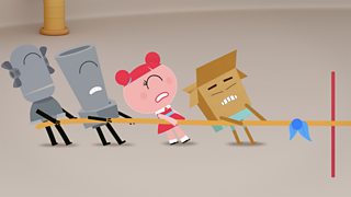 A journey to a new planet leads the Game Catchers to aliens who love tug of war.