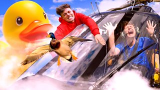 The bros return a giant rubber duck home and face the Gladiators referees.